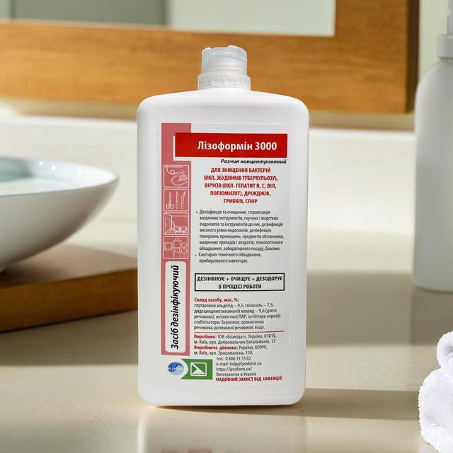 | Тип накладення | Концентрований засіб для дезінфекції Лізоформін 3000 1 літр Стерилізація поверхонь та інвентарю |
