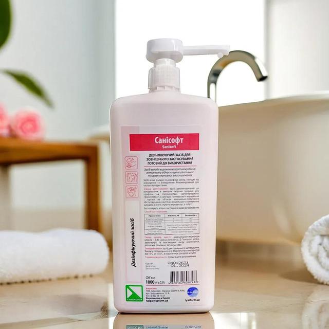 | Тип призначення | Дезінфікувальний концентрований засіб для шкіри Санісофт 1000 мл Антисептик для дезінфекції рук |