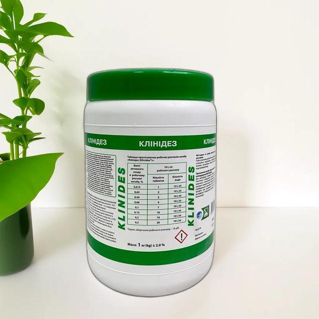 | Тип призначення | Таблетки Клінідаз для оброблення та дезінфекції поверхонь, обладнання, знезараження води 1 кг |