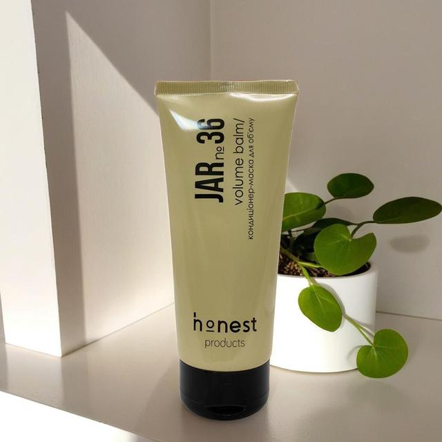 Кондиціонер-маска для живлення та об’єму JAR №36 від honest products містить в своєму складі запатентований комплекс для зміцнення структури волосся зсередини, що працює на молекулярному рівні створюючи водневі та іонні зв’язки з кератином волосся, покращуючи і ущільнюючи його структуру. Після застосування волосся стає щільним та об’ємним. Підходить для щоденного застосування. Не містить барвників та не викликає звикання волосся.