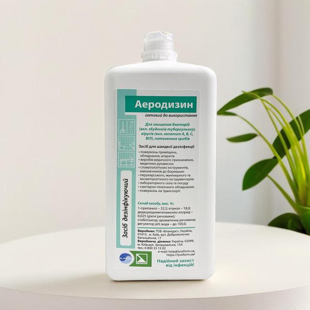 | тип призначення | Дезінфікувальний засіб для дезінфекції поверхонь і виробів медичного призначення Аеродезин |
