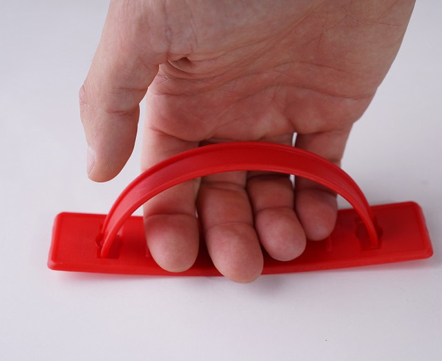 Двокомпонентна пластмасова ручка з підкладкою для вантажу до 18-22 кг. Використання ручки для картонного паковання наших клієнтів дали змогу збільшити продаж на 20% -30% тільки завдяки зручнішому картонному пакованню з пластиковими ручками. Пластикові ручки використовуються на всіх типах паковання, тари, пакетах.
